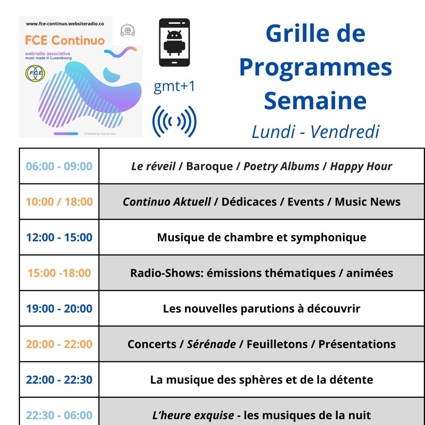 Le programme de FCE Continuo, webradio Luxembourg