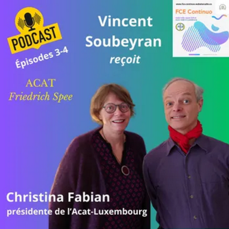 Dans le 3e épisode de son podcast, Vincent Soubeyran reçoit Christina Fabian, la présidente d'ACAT Luxembourg, qui nous parle de son arrivée à Luxembourg dans l'année historique 1989...